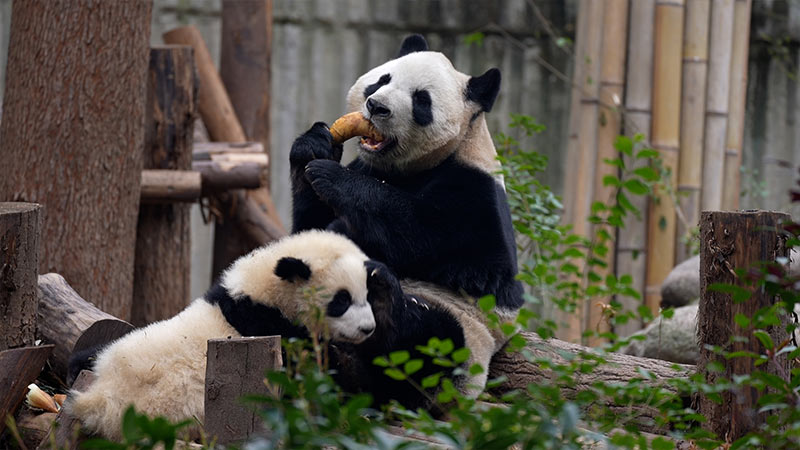 屁屁太胖被卡在树上下不来,看来熊家必须要减肥了